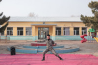 爱心公益送书队的同学为孩子们准备了精彩的文体节目,学生代表曹美琪以诙谐风趣的语言讲述了第二代铁人王启民的故事,鼓励孩子们以铁人为榜样,继承发扬大庆精神铁人精神;365英国上市官方网站文艺部两名学生干部教孩子们演唱歌曲《我和我的祖国》,旨在宣扬爱国主义精神,让新一代的爱国之心得以萌芽;四位退伍大学生向孩子们展示了军体拳,格斗术以及军歌,孩子们的眼中都闪烁着激动和仰慕之情;最后,张校长特别邀请的非遗传承人包老师以一曲四胡演奏致谢所有同行的志愿者们。