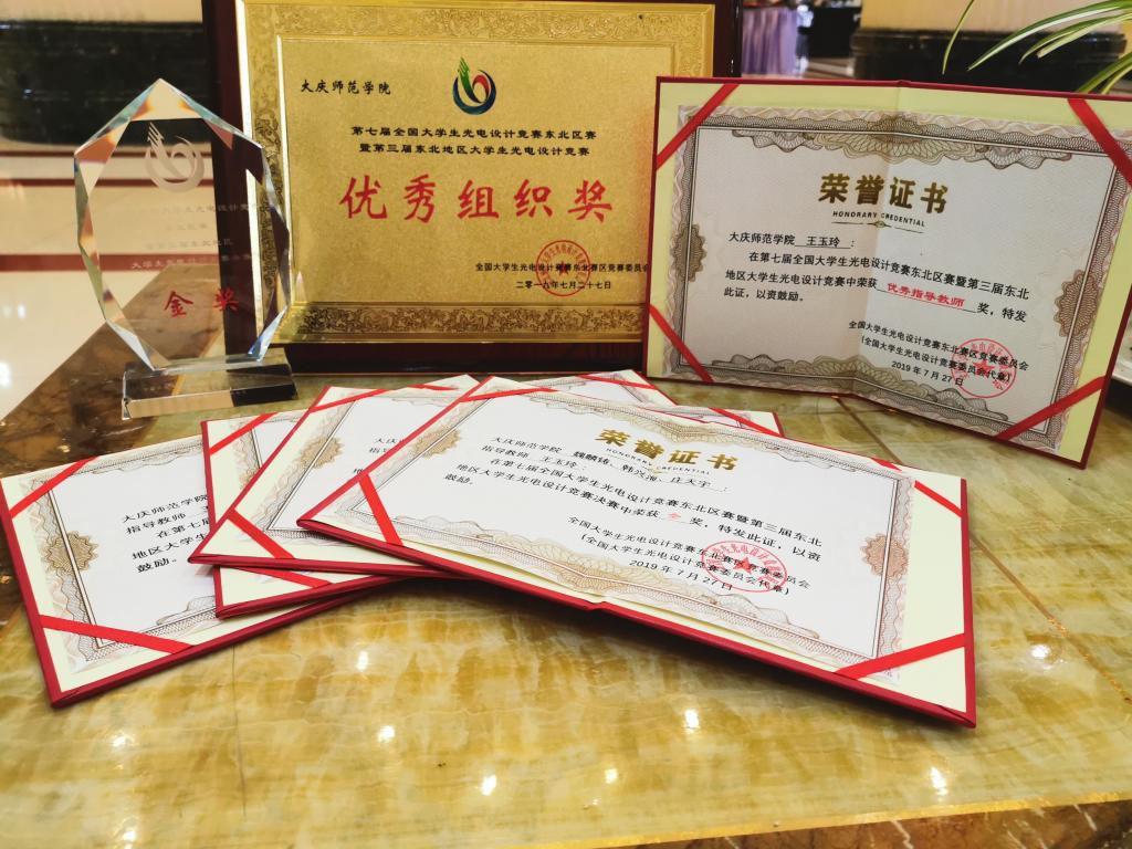 2019年7月26日-2019年7月27日第七届全国大学生光电设计竞赛东北赛区暨第三届东北地区大学生光电设计竞赛决赛在大连大学开幕,365官网机电学子经过激烈角逐,在现场路演阶段斩获金奖。同时365官网365英国上市官方网站获得优秀组织单位,王玉玲老师获得优秀指导教师奖项,着实是满载而归。