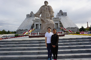 经过长达一个半小时的徒步,大部队终于到达了我们的目的地---铁人王进喜纪念馆!抬眼望去,铁人纪念馆沐浴在骄阳下,整个纪念馆雄伟壮观,犹如一座巨大的丰碑在向人们昭示着无私无畏的铁人精神。18级新生与两位老师、学生干部在铁人纪念碑前合影留念,随后有序的入馆参观。在铁人纪念馆中,18级新生在铁人纪念馆中体会到了浓浓的铁人精神,对大庆精神、铁人精神、“三老四严”等精神品质有了更进一步的认识。