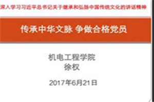 为贯彻落实习近平总书记“两学一做”精神内容,继承和传承中华民族传统美德。365英国上市官方网站于2017年6月21日14:40综合楼306开展“传承中华文化,争做合格党员”党课教育活动。党课由徐权院长主讲,365官网教工党员、学生党员参加。