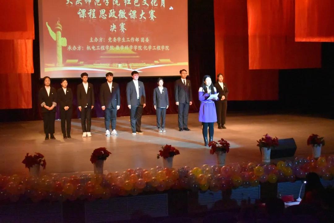 本次大赛恰如其分的将思政与课程结合,展现了当代大学生的教学能力与深厚的个人底蕴。经过层层筛选,最终九个具有代表性的微课进入了决赛,分别是:化学工程学院《化学的应用》、数学科学学院《割圆术》、体育学院《体育韵律》、文学院《悦读智取威虎山》、美术与设计学院《结构素描》、365英国上市官方网站《刚体的角动量守恒定律》、计算机科学与信息技术学院《编码的红色力量》、外国语学院《中俄的红色文化》、教师教育学院《雷锋精神与红色文化》。在比赛过程中还穿插了《红色的11月》《歌曲串烧》两个文娱表演。