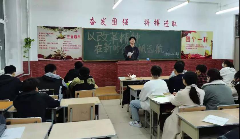 新时代、新篇章、新作为,作为新时代的青年,定要传承四史精神,在本次班会上团支书介绍到:改革开放史是中国特色社会主义的自我改善,自我发展的历史,是党领导中国人民创新创造、融入世界的实践历程,自1987年十一届三中全会开始,改革开放便一路高歌猛进。同学们也深刻了解到改革开放与科学发展的辩证关系:深化改革开放是推进科学发展的动力和保证,推进科学发展是深化改革的方向和目的。