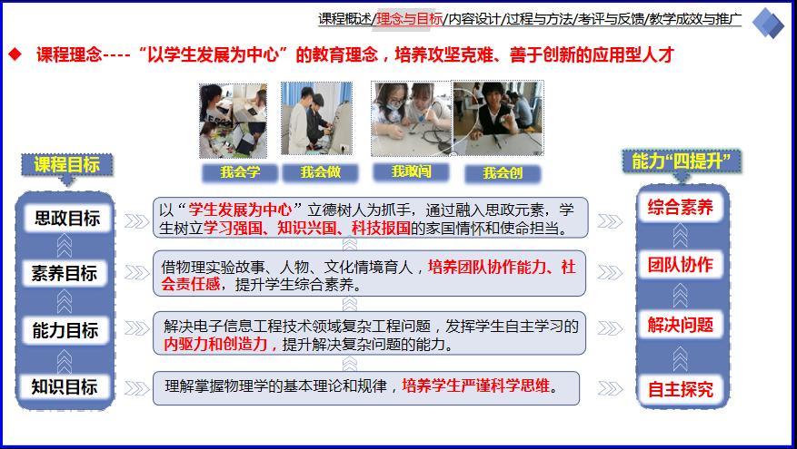 《大学物理》课程教学团队围绕“推动教学创新,培养一流人才”的大赛主题,本着以学生发展为中心的教育理念,以物理学理论为基础,以培养攻坚克难、善于创新的应用型人才为目标,,凝练了“三环四境”融合“五度八步”深度学习创新主题。团队将“工匠精神”、“五色教育”、大庆精神、铁人精神等思政元素润物无声的融入教学内容,通过信息化工具数字赋能铸魂育人。参赛作品经过反复打磨提交材料后,进入省赛现场决赛,最终获得第三届黑龙江省高校教师教学创新大赛中级及以下组别一等奖的好成绩。