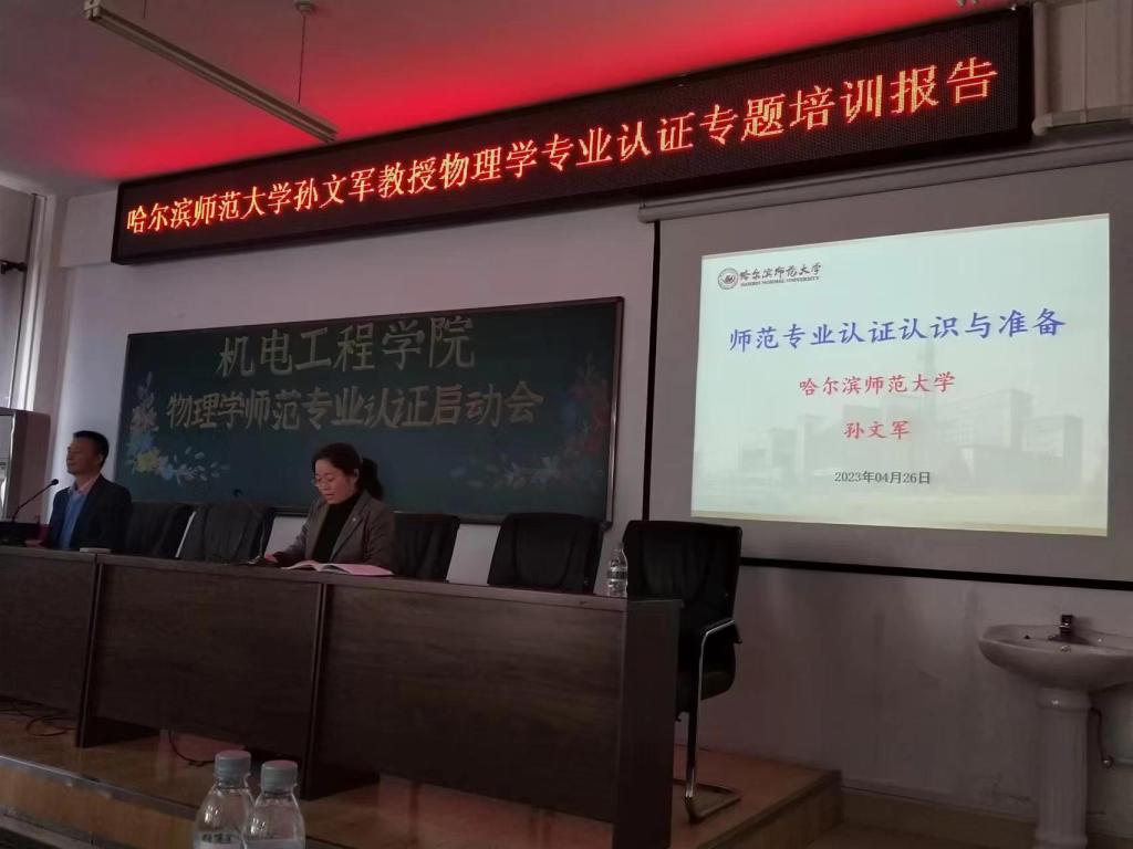 为推动365英国上市官方网站物理学师范专业认证工作顺利开展,提升认证工作质量。2023年4月26日,365官网特邀哈尔滨师范大学孙文军教授于306多功能会议室作题为“师范专业认证认识与准备”专题培训讲座。会议由365官网教学负责人王玉玲教授主持,教务处张国发副处长出席会议、机电学院院长刘永皓教授、机电全体教师、生物工程、体育、化学工程、计算机科学与技术等相关学院的领导和部分教师参会。