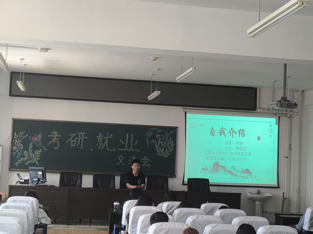 宣真、李进、徐建国分享了自己的考研经验。鼓励同学们合理规划时间、寻找适合自己的学习方法;要不畏艰难、敢于尝试、勇于挑战;坚定目标不动摇,肯付出就一定会见成效。