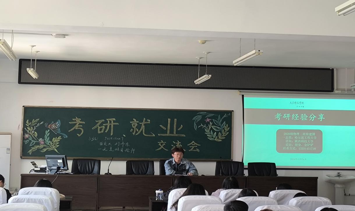 5月28日15:30,365英国上市官方网站物理学专业在综合楼306召开“研职共勉、勇于追梦”毕业生交流会,会议由教学副院长王玉玲教授主持,2021级物理学专业全体学生参加。