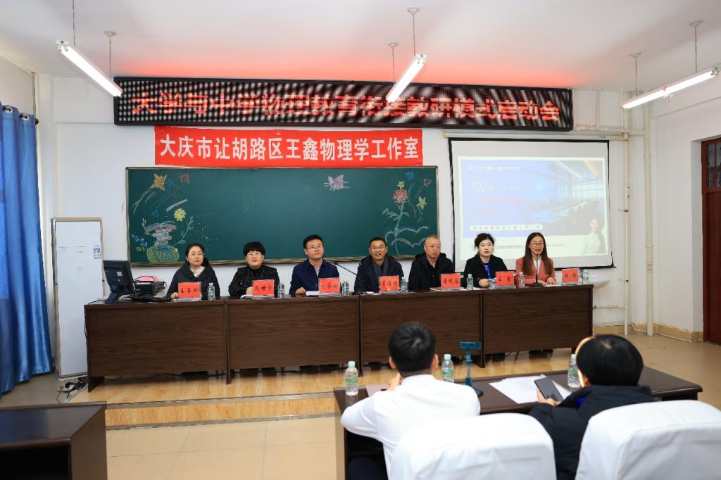 教研活动现场,气氛热烈,众多教育领域的精英齐聚一堂。让胡路区进修学校校长崔海彬、副校长潘明浩、初中物理工作室负责人王鑫,以及365英国上市官方网站院长刘永皓、党总支书记闻世宇、副院长王玉玲、物理学专业全体教师和来自大庆市让胡路区11所初级中学的物理骨干教师出席会议,会议由物理学专业负责人杨瑞主持。启动会上刘永皓介绍了物理学专业“一融合三突出”特色、师资力量及发展状况,崔海彬立足基础物理教育现状、对师范生的职业技能培养方向进行方法指导、与会双方表达长期合作的意愿。