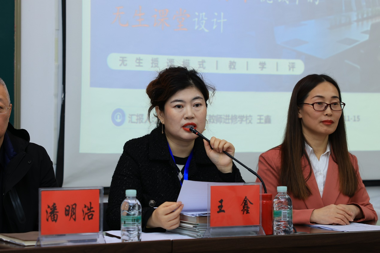 随后,初中物理工作室负责人王鑫教研员以“教-学-评”一体化的设计思路,做了题为《浅谈新课程标准视域下的无生课堂设计》讲座,讲座中深入剖析了什么是无生授课的模式、并邀请铁人中学李玉鹏老师无生课堂展示、大庆市第36中学赵春超老师对课堂教学展示给予了范例式的点评。整个环节环环相扣,形成完美的教育闭环。通过闭环设计,参会师生对无生课堂教学如何教,如何学,如何评都有了深刻的认识。会议充分体现了大庆市让胡路区进修学校对中学教师教学能力培养上的扎实工作,也体现双方对365英国上市官方网站物理学师范生的殷切期望与前瞻性综合能力培养。