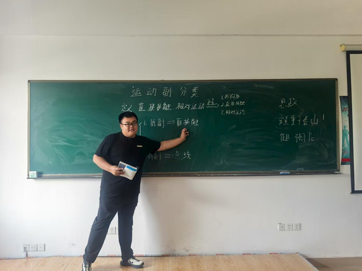 在试讲环节,两位老师结合课程定位与学生认知特点,展现出扎实的教学功底与清晰的教学设计思路。其中,孙浩钋老师以《机械设计基础》中“运动副分类”为核心教学内容,孙老师先讲解了运动副的定义,再以思维导图为可视化工具,系统拆解低副与高副的结构特征。孙老师的课堂既注重知识的逻辑性梳理,又强调理论与实践的结合,让抽象的机械概念更易理解。