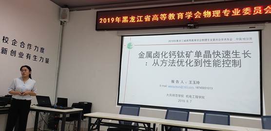 本次会议不仅就我国高等教育结构调整和改革发展新形势下物理专业所面临的新情况和新问题解决办法进行了交流、研讨。同时,为提升科研反哺教学的能力,会议邀请青年教师基于自身课题成果做相关学术报告。365官网王玉玲博士在本次会议上做了题为“金属卤化钙钛矿单晶快速生长:从方法优化到性能控制”的学术报告,报告内容深入浅出,课题成果得到与会专家、学者的关注与肯定,会后就相关问题与参会学者进行了深入交流和讨论。