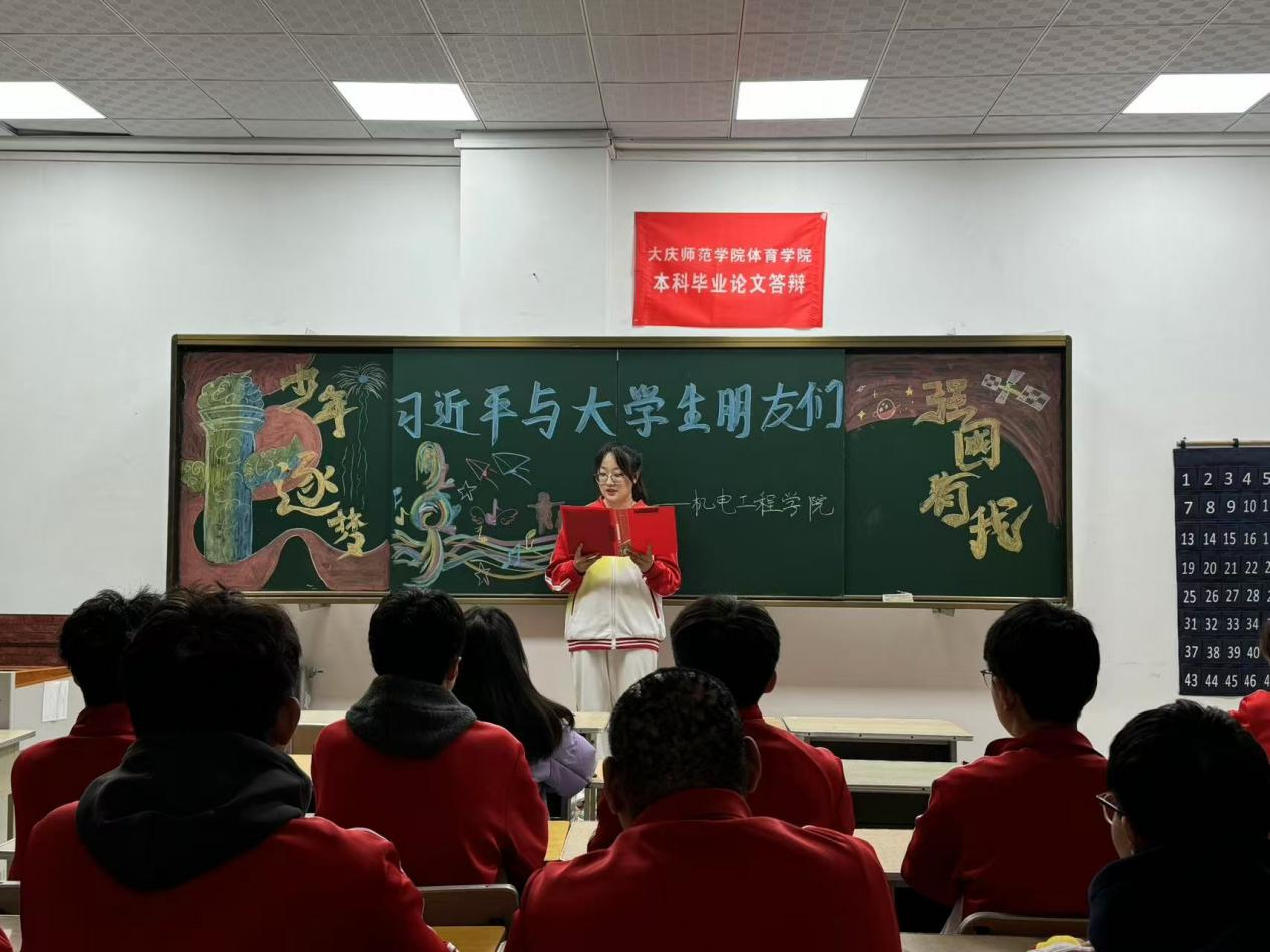 读学:同学们通过学习和领悟习近平总书记与大学生交流时的金句和教诲,深刻感受到国家对青年一代寄予的厚望和重托,激励同学们成为有本领、有理想的新时代好青年。