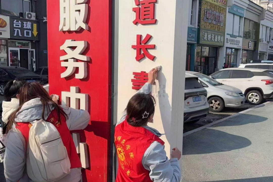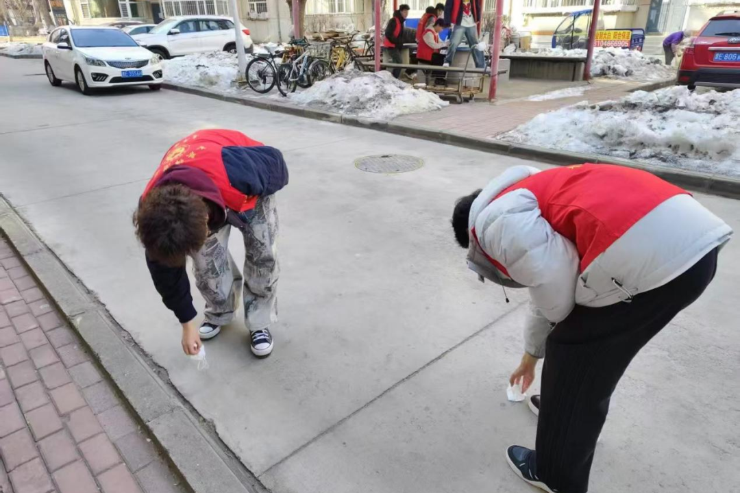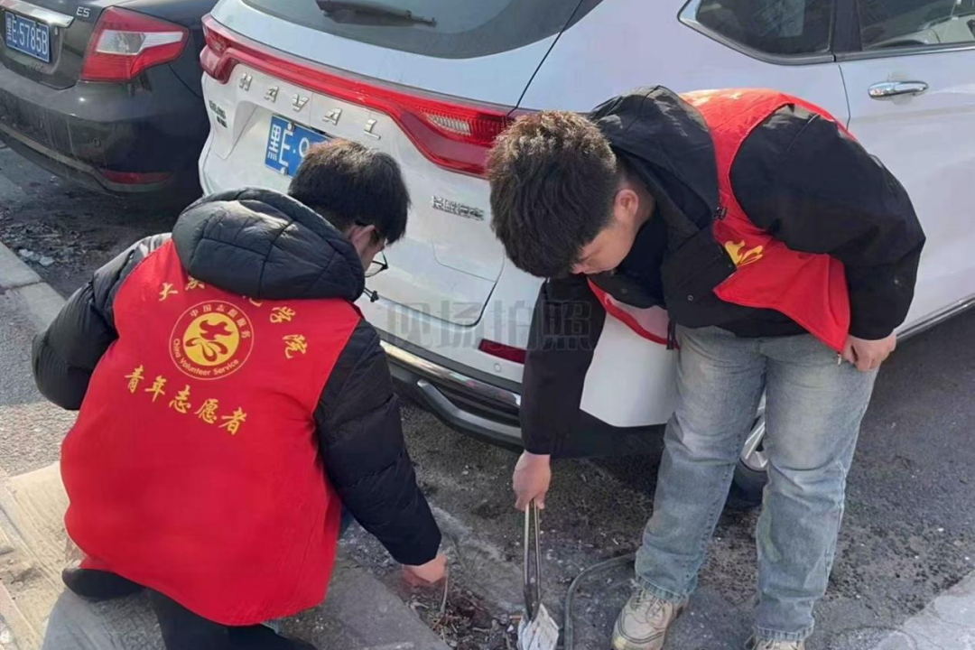 在社区的各个角落,机电院的青年志愿者们忙碌不停。他们手持工具,仔细铲除橱窗上的小广告,清理旧衣物回收箱上的污渍。哪怕天寒地冻,也挡不住他们服务的热情,用行动诠释着奉献精神,为营造整洁社区环境全力以赴。