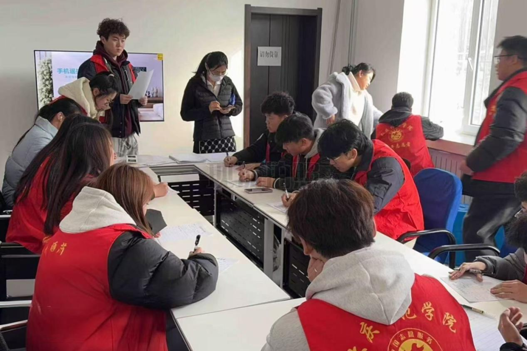 在室内,机电院的志愿者们齐聚一堂。有的专注书写记录,有的站立交流探讨,氛围热烈而有序。他们以饱满的热情为志愿活动做准备,即将带着知识与关怀走进社区,用行动传递温暖,为志愿精神注入新活力。